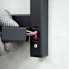 Полотенцесушитель можно подключить к сети питания справа при помощи шнура с вилкой длиной 70 см и скрытым способом напрямую к проводке, заложенной в инженерную систему дома без использования штатного кабеля. Скрытый монтаж к электропитанию осуществляется через распаячную коробку, установленную справа на коллекторе полотенцесушителя.
